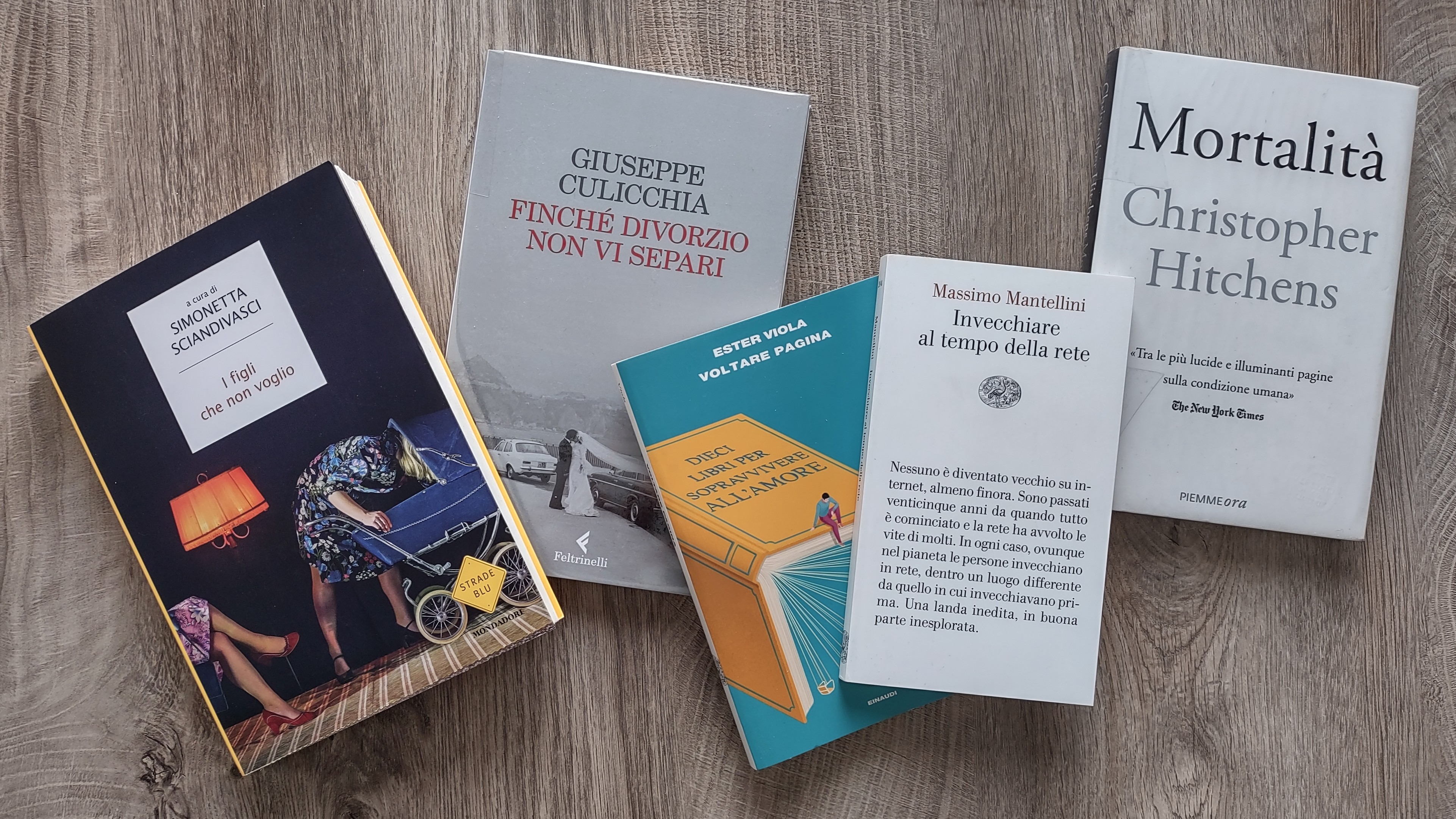 Cose leggere di saggistica italiana (più un classico in lingua straniera da riscoprire) recente? Vi consiglio cinque libri che mi sono passati fra le mani. Un ringraziamento alla Biblioteca Civica di Rovereto, che custodisce una copia dell’ormai introvabile e fuori catalogo libro postumo di Hitchens – certo, a oggi si può comunque comprare a 35 euro su eBay e simili –, e a Einaudi che mi ha fatto omaggio dei libri di Viola e Mantellini (grazie!). Come in una puntata di “Sei gradi” di Radio Tre, i cinque saggi sono legati tra loro perché dalla famiglia passiamo al divorzio, dal divorzio all’avvocata divorzista che parla dei suoi libri preferiti, da un libro di Natalia Ginzburg che ha ispirato Mantellini una riflessione sulla vecchiaia oggi, dalla vecchiaia alla morte. Tutti, tranne Mortalità, sono disponibili anche in formato ebook tra i cinque e i dodici euro, verificate se la vostra biblioteca li ha in digitale.