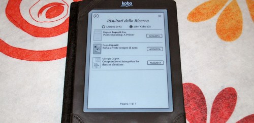 Ho provato a sfogliare un paio di ebook, anche non acquistati da Kobo, e non ho notato nulla di diverso dalla precedente versione del firmware uscita in autunno. Non c’è stato nessun stravolgimento della pagina Home – grazie al cielo –, forse un lieve miglioramento della velocità di cambio pagina (ma come già scritto potrebbe essere una mia impressione), le innovazioni si concentrano nella schermata della libreria. Se cliccate sulle tre barrette di fianco ai vostri titoli troverete una nuova voce “Archivia” e una già presente, modificata, “Elimina”.